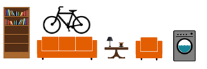 Furniture and boxes from a 2-3 bedroom apartment/house. Refrigerator or washer and dryer, dining room set, couch & loveseat.